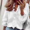 Designed for both office and everyday outfits, this women’s ruffled blouse features delicate ruffle detailing along the neckline and sleeves, giving it a refined and feminine appearance. The lightweight fabric drapes well and pairs beautifully with trousers, skirts, or jeans for versatile styling.