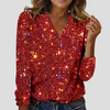 Shine bright at any event with this Women’s Plus Size Sequin Party Top, designed to flatter your curves while turning heads. With a classic V-neckline, shimmering sequin fabric, and elegant long sleeves, this blouse is perfect for festive nights out, cocktail parties, or holiday celebrations.