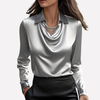 Women’s Satin Blouse with Draped Collar