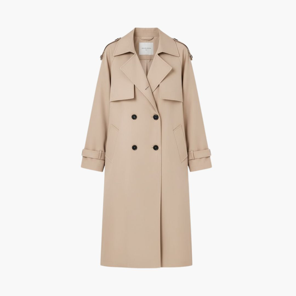 Discover a trench coat crafted with a timeless button-down placket and a structured silhouette for refined outerwear styling. Featuring adjustable cuffs and hip-level side pockets, it balances classic design with everyday utility. This piece is a versatile layer that elevates seasonal outfits while offering a neat, elongated outline.