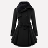 This women’s winter coat features a button-front closure and an adjustable belt at the waist, creating a defined silhouette and refined look. Designed with long sleeves and side pockets, it brings structured design elements that pair well with a range of outfits for cooler days. The mid-length cut and classic details make this coat a versatile addition to seasonal wardrobes, suitable for both casual and elevated ensembles.