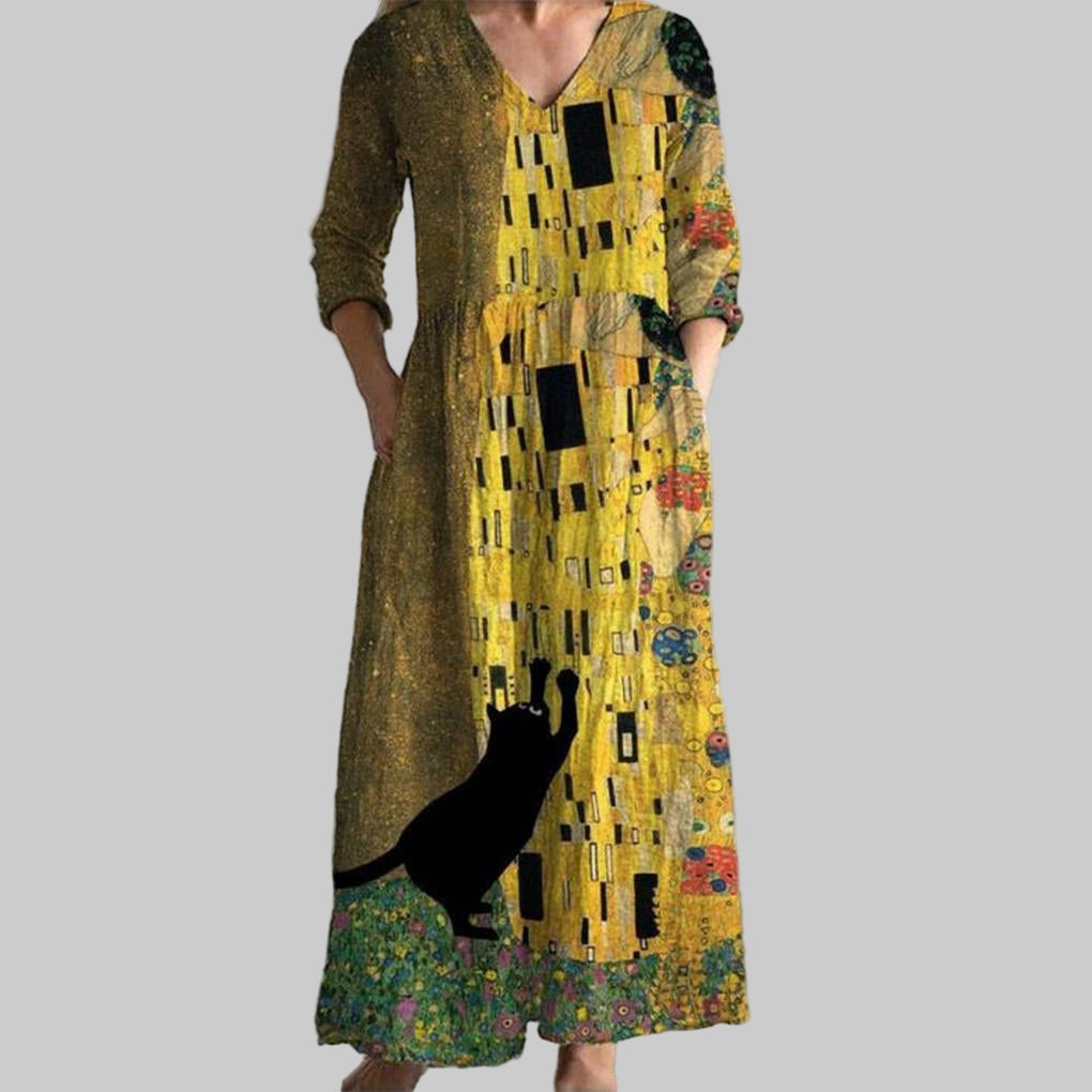 Creative Cat Print Dress – Playful Vintage-Inspired Charm