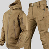 Engineered for changing seasons, this two-piece outdoor set offers layered protection against wind and moisture while providing interior fleece insulation for added warmth. The coordinated jacket and pants form a unified outfit that adapts to trails, fieldwork, or everyday outdoor use.