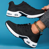 These women’s air cushion sneakers feature a flying woven upper and technology that helps absorb impact during movement, making them a versatile option for daily activities, workouts, or errands. The lace-up design provides a secure fit while the patterned upper adds visual character to casual outfits.