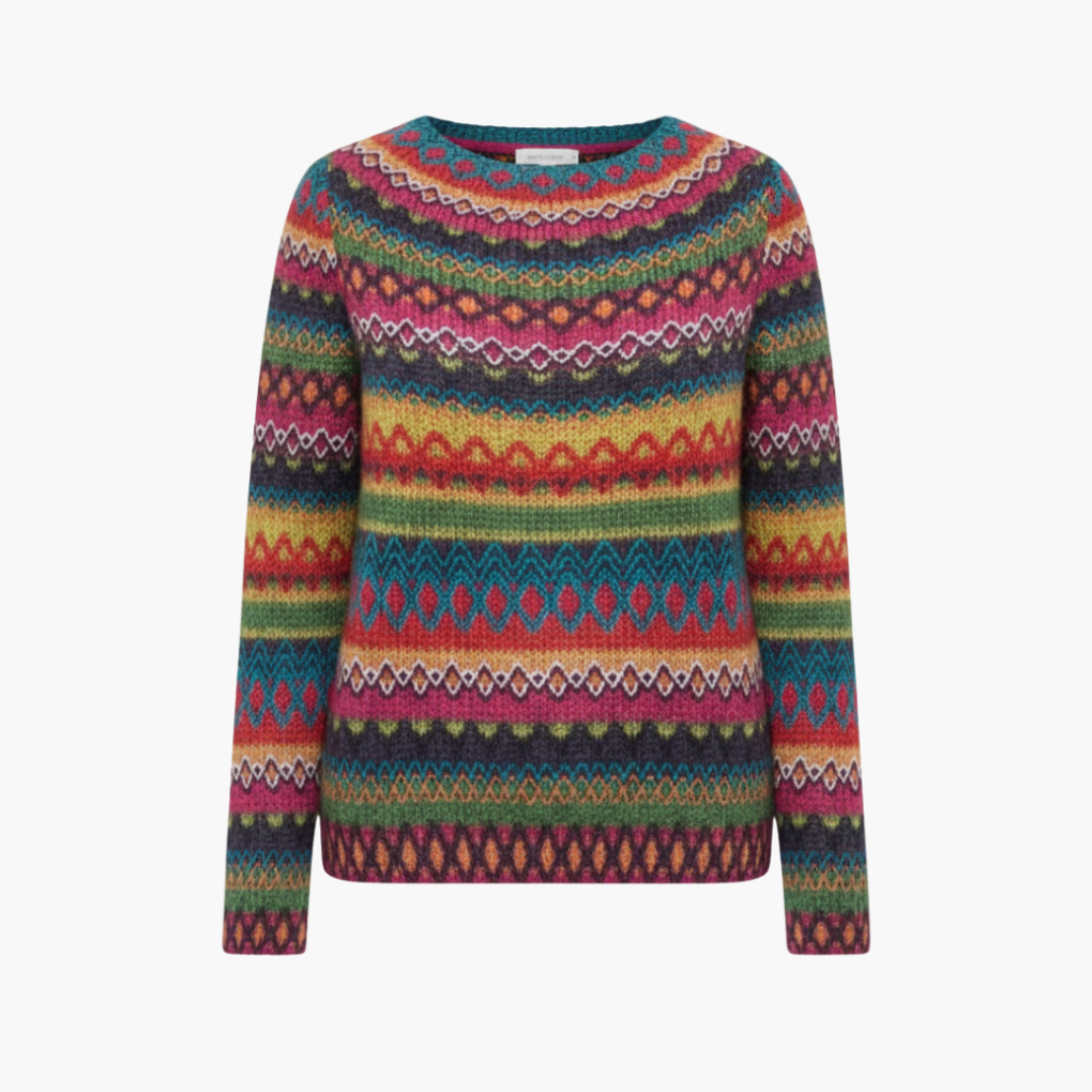 Discover a knit sweater crafted with a classic round neckline and long sleeves for versatile everyday styling. The multicolored striped knit surface adds visual texture that pairs well with casual or layered looks. Designed for a flattering straight cut, this sweater is a great addition to seasonal wardrobes for transitional outfits and relaxed occasions.