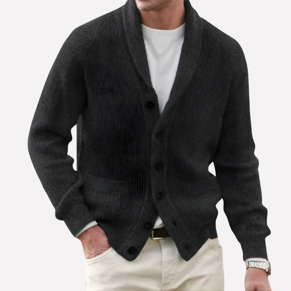 This men’s cardigan features a shawl collar and button-front placket for a relaxed yet structured look that works well with everyday outfits. The knitted design offers a textured surface that pairs nicely with a range of tops, from tees to shirts. Side pockets add practicality, making this piece suitable for daily routines, casual gatherings, and layered looks.