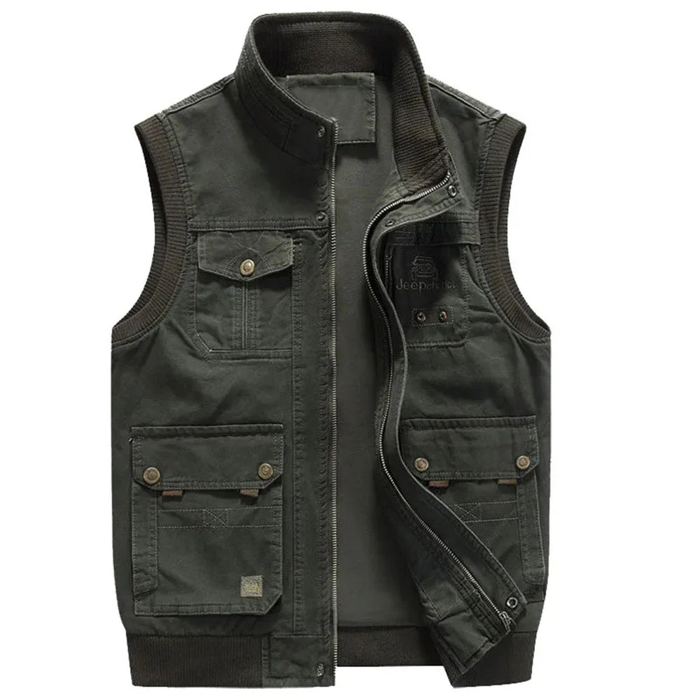 The JacobNora AUS Outdoor Vest is designed for men who want to combine functionality and style. This sleeveless vest is made from high-quality cotton and features multiple practical pockets, making it ideal for outdoor activities such as fishing, hiking, or traveling.