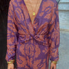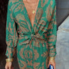 Printed Midi Dress with Knot Front and Deep V-Neck