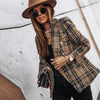 Elevate your wardrobe with this sophisticated blazer, designed for the modern woman who values both style and comfort. Its tailored fit and timeless plaid pattern make it a perfect choice for various occasions, from professional settings to casual outings.