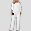 Step into versatile elegance with the Sophia cold‑shoulder two‑piece set, crafted to flatter and flow effortlessly. Featuring a breezy cold‑shoulder top with soft ruffle details and coordinating wide-leg trousers, this ensemble is made from a lightweight, draping fabric that moves beautifully. Ideal for stylish daywear or elevated evening looks, it's a polished set that feels as good as it looks.