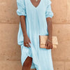 The midi dress effortlessly combines elegance and comfort, making it an ideal choice for various summer occasions. Its versatile design allows for easy transitions from casual daytime outings to more refined evening events.