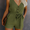 Step into the season with confidence in this breezy solid-color jumpsuit designed for stylish comfort. With its flattering neckline and playful five-point shorts, it’s perfect for sunny days, city strolls, or casual get-togethers.