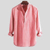 This cotton-linen blend Henley shirt offers a timeless design with modern comfort, making it a versatile addition to any wardrobe. Its band collar and striped pattern provide a sophisticated look suitable for various occasions.