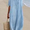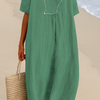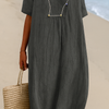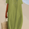 Relaxed Beach Dress with V‑Neck and Short Sleeves