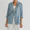 Elevate your summer wardrobe with this relaxed-fit natural fibers blazer, crafted for breathable comfort and timeless style. Made with lightweight, thin fabric, this blazer is ideal for warm weather, offering a polished silhouette without adding bulk. Designed with middle-aged women in mind, the structured yet relaxed cut ensures easy layering and everyday sophistication.