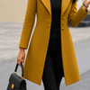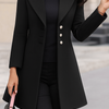 The Rhonda coat features a sleek long silhouette with three buttons for a clean, modern look. Made for women who want a versatile outerwear piece that pairs well with both casual and dressy outfits.