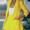 The set is a stylish and versatile addition to your wardrobe. This two-piece ensemble features a modern blazer paired with matching high-waisted shorts, offering a blend of sophistication and comfort suitable for various occasions.