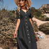 Elevate your warm-weather wardrobe with the dress, a perfect blend of comfort and timeless style. Crafted from breathable cotton, this dress features a flattering V-neckline and a relaxed fit, making it ideal for both casual outings and semi-formal occasions.
