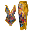 The swimsuit blends retro charm with modern elegance. Featuring a deep V-neckline and subtle ruffles, this stylish one-piece offers a flattering fit for every woman. Perfect for a relaxing day at the beach or pool, with a unique vintage print and a fashionable cover-up look.