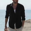 Vintage Solid Linen Shirt with Turn-Down Collar